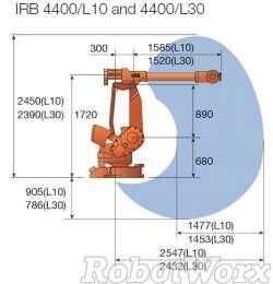 The ABB IRB 4400/L10 is a long-arm version of the ABB IRB 4400 S4C.