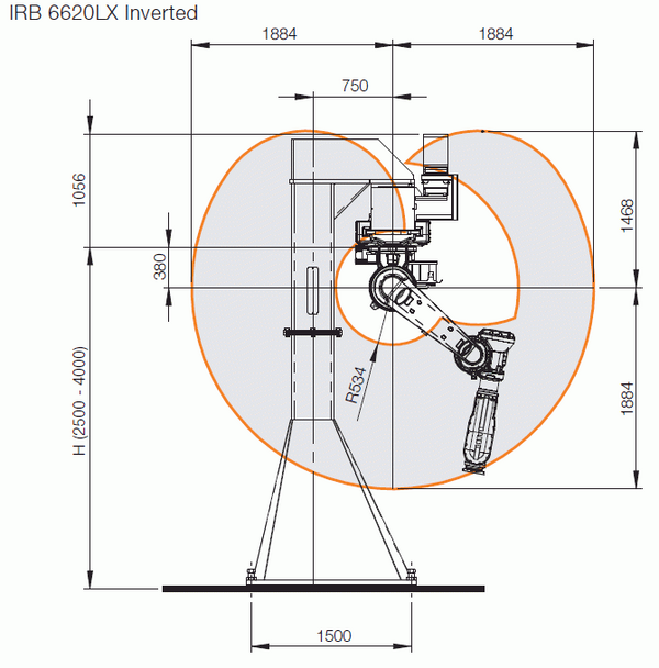 The gantry unit is available in lengths up to 33 meters and heights up to 4 meters. The arm can then either be mounted on the side or inverted for the most effect angle. The IRB 6620LX IRC5 includes a 5-axis arm with Foundry Plus protection. It is IP67 rated, while the linear axis is IP66 protected.
