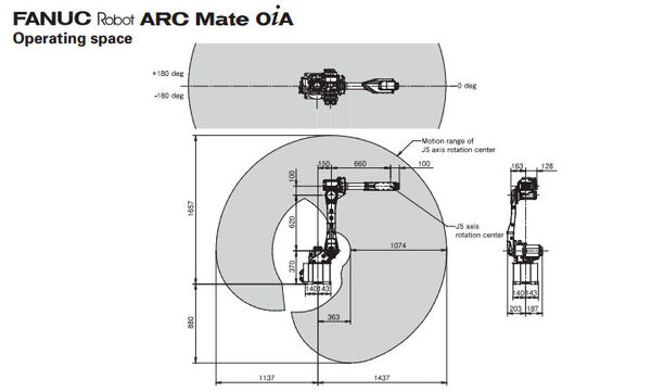 The Fanuc ARC Mate 0iA robot is a very lightweight and compact robot, specifically made for arc welding applications. The lightweight ARC Mate 0-ia arm provides high speed and accuracy in the arc welding process. The Fanuc Arc Mate 0iA robot features a 3kg payload and offers digital communication between Lincoln Arc Welding Power Supply.