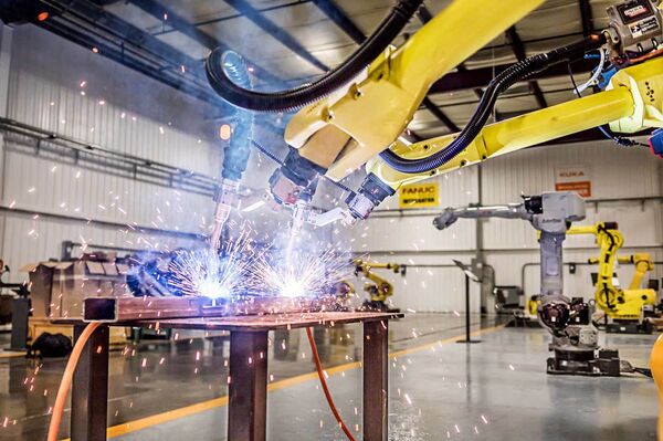 The extended reach Fanuc ARC Mate 120iB/10L performs arc welding and cutting applications with ease. The 120iB/10L uses its six-axes, overhead rail-mount, horizontal reach of 1,885 millimeters and, +/- 0.1 millimeter repeatability to ensure that parts large and small receive extremely accurate welds and cuts. The Fanuc ARC Mate 120iB 10L RJ3iB arc welding robot has a maximum payload capacity of 10 kilograms.