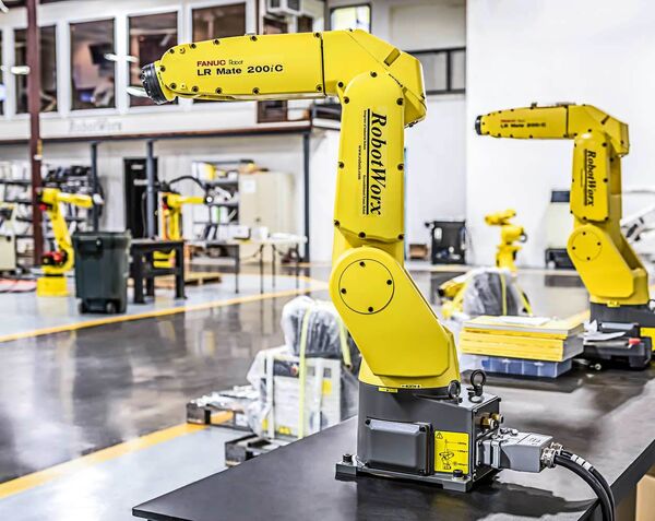 Faster and more compact than its predecessors, the Fanuc LR Mate 200iC robot arm's high-positioning accuracy and tabletop size make it ideal for a variety of automation applications, including material handling, machine tending and assembly. The size of a human arm, the mini LR Mate 200iC moves with 152 percent more speed and 50 percent more accuracy than the earlier models.
