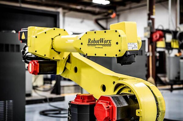The M16iB/20 RJ3iB has a small footprint, streamline design, and reaches 1,667 millimeters horizontally to ensure a large work envelope and that large parts will be reached. Along with a small footprint, this robot also saves space by providing the manufacturer with a variety of mounting options, including floor, inverted, angle, and wall mounting.