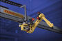 The M 16iB-T RJ3iB improves machine productivity by 30 percent. The robot allows the customer to get creative with their floor plan. Combining the best of gantry flexibility, this top-loader robot works from an overhead track so the only floor space taken up is from two track posts.