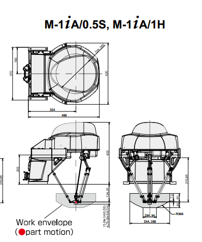 Both the new and used Fanuc M-1iA/0.5SL have a variety of mounting options to meet a number of tasks that need the 4-axis motion with the great 420 mm reach and +/- 0.03 mm repeatability the M-1iA/0.5SL offers.