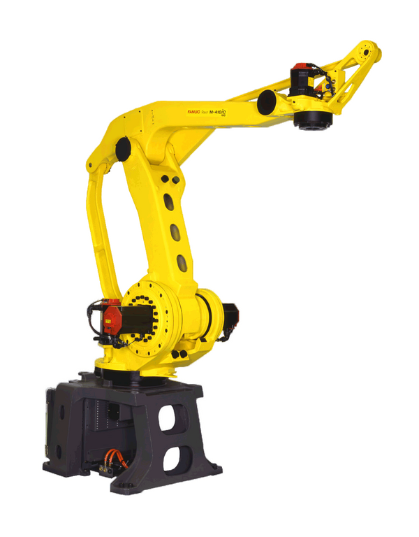 The Fanuc M-410iC/110 provides users with a high level of throughput for automating palletizing systems. Quick and easy to integrate, the M-410iC/110 has a hollow wrist for easy wiring to the EOAT and a large payload capacity of 110 kg.