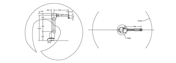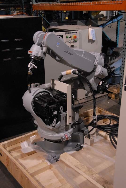 Range of motion in EA 1800N NX100 Motoman welding robots are expanded through the improved design of the B and T axes. A hollow upper arm optimizes the bend radius of the torch and prevents pinched and stretched cables. The higher payload of this arm allows for use in multiple applications, including dispensing and material handling.
