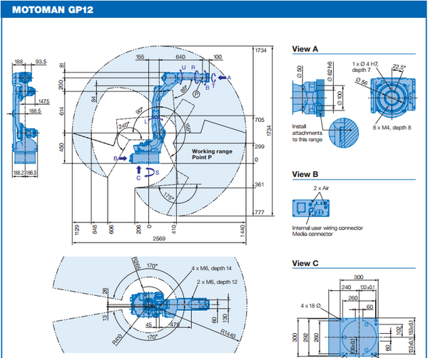 The Motoman GP12 is the material handling workhorse you want on your floor! It has an amazing work envelope, large payload (12 kg), speeds up to 15% faster, and highest wrist allowable moment in its class. Combine this with it's slim design that minimizes interference with peripheral devices in small spaces and its ability to work close and deep into work spaces; you won't need to look any further for the perfect solution to your material handling application.