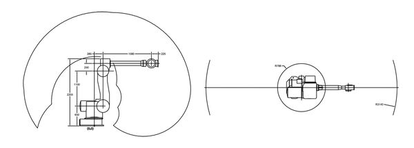 The Motoman HP165R is the shelf-mount version of the Motoman HP165. On shelf-mounted robots, such as Motoman HP 165R NX100, axis 2 is located further forward to increase the depth of the work envelope in a downward direction.