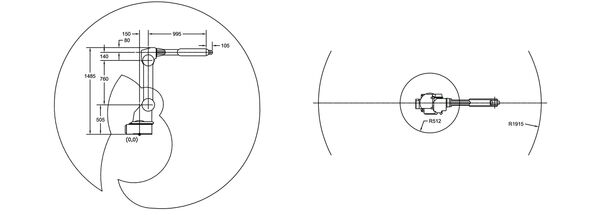 This versatile high-speed industrial robot has a slim base, waist, and arm. This design allows the robot to be placed close to the workpiece holding fixtures to improve part accessibility.