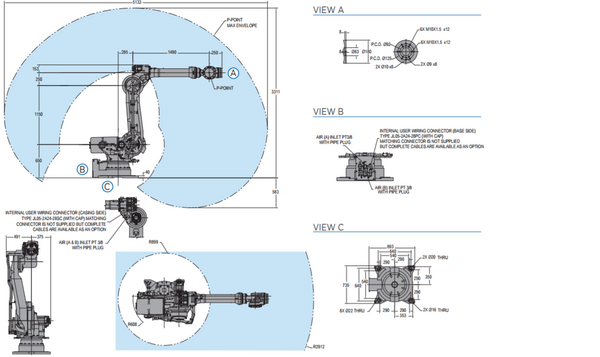 The Motoman MH250 II is paired with the DX200 controller and the IP67-rated wrist and an IP54 bodyare standard the MH250 II robots.