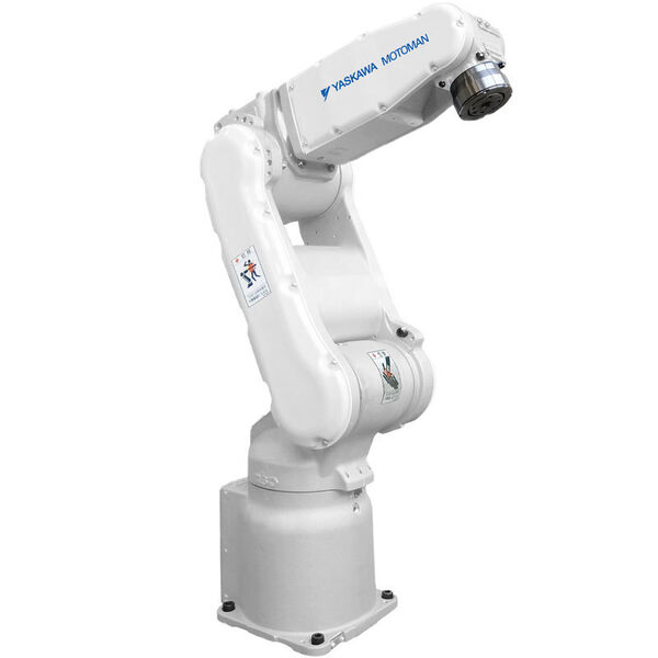 The MH5S is a compact, six-axis robot that has high axial speeds and can handle up to a 5 kg payload and work a ride range of tasks from small parts assembly, machine tending, to arc welding. It offers the widest work envelope in its class with a horizontal reach of 706 mm and vertical reach of 1,193 mm. The shortened distances between the B-axis and T-axis helps to enhance the carrying capacity with high moments of inertia.