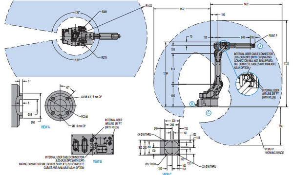 With a 6 kg payload and 1422 mm horizontal reach, the MH6F has the widest working envelope in its class. The Motoman MH6F features built-in collision avoidance and comes equipped with an FS100 controller.