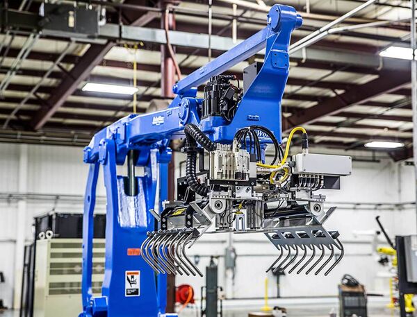 For high demand palletizing jobs, the Motoman MPL160 offers the speed and accuracy needed for maximum production. This four-axis robot arm has internally routed cables and air lines for high system reliability. A hollow wrist aids in wrist motion and increases cable life.