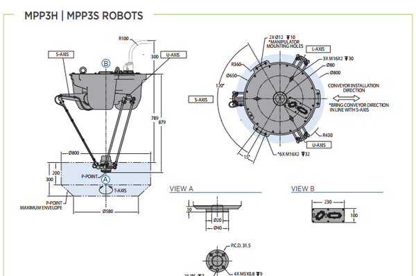 The high-speed, precise Motoman MPP3H packaging robot comes equipped with the FS100 controller and a 3kg payload. This robot is highly accurate and has zero footprint, with a small installation space of only 750 mm. This robot has a motion range of 1300mm X 600mm and an IP67 protection rating.
