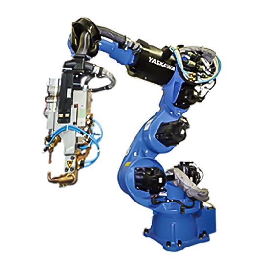 The VS100 is a great option for high-density layouts to help reduce cycle times as it provides a flexible reach and large range of motion with its seven degrees of freedom. This robot's slim design is flexible and beneficial for automotive applications as it can use DC spot guns with compact servo actuators. It can result in shorter production lines, the elimination of multiple stations, and tinier spot welding workcells as it can be placed in close proximity to other robots.