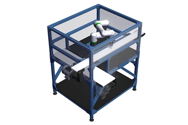 Enclosed Cobot Workstation with Universal Robots UR5e and Conveyor (AS-PP-306472 v14)
